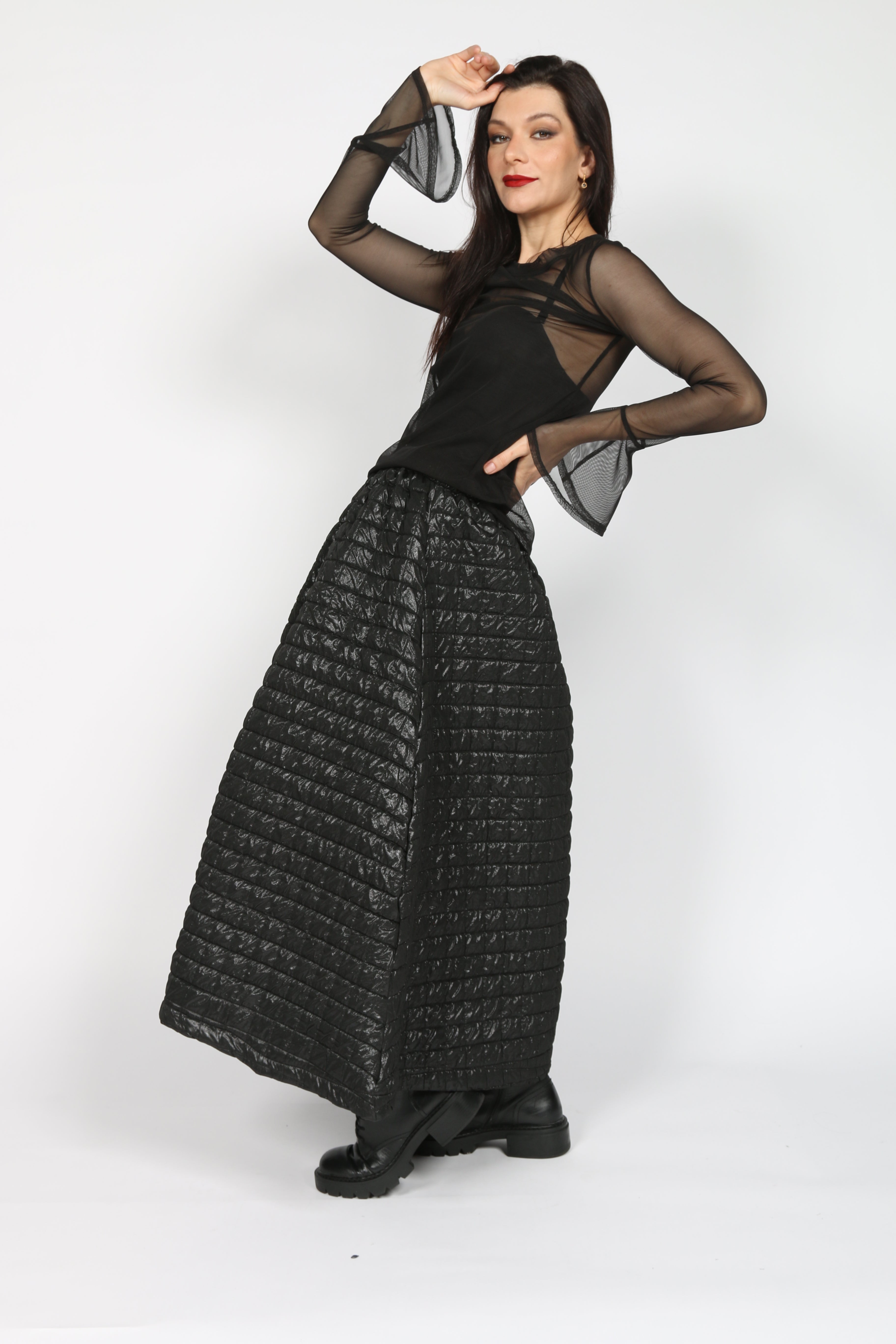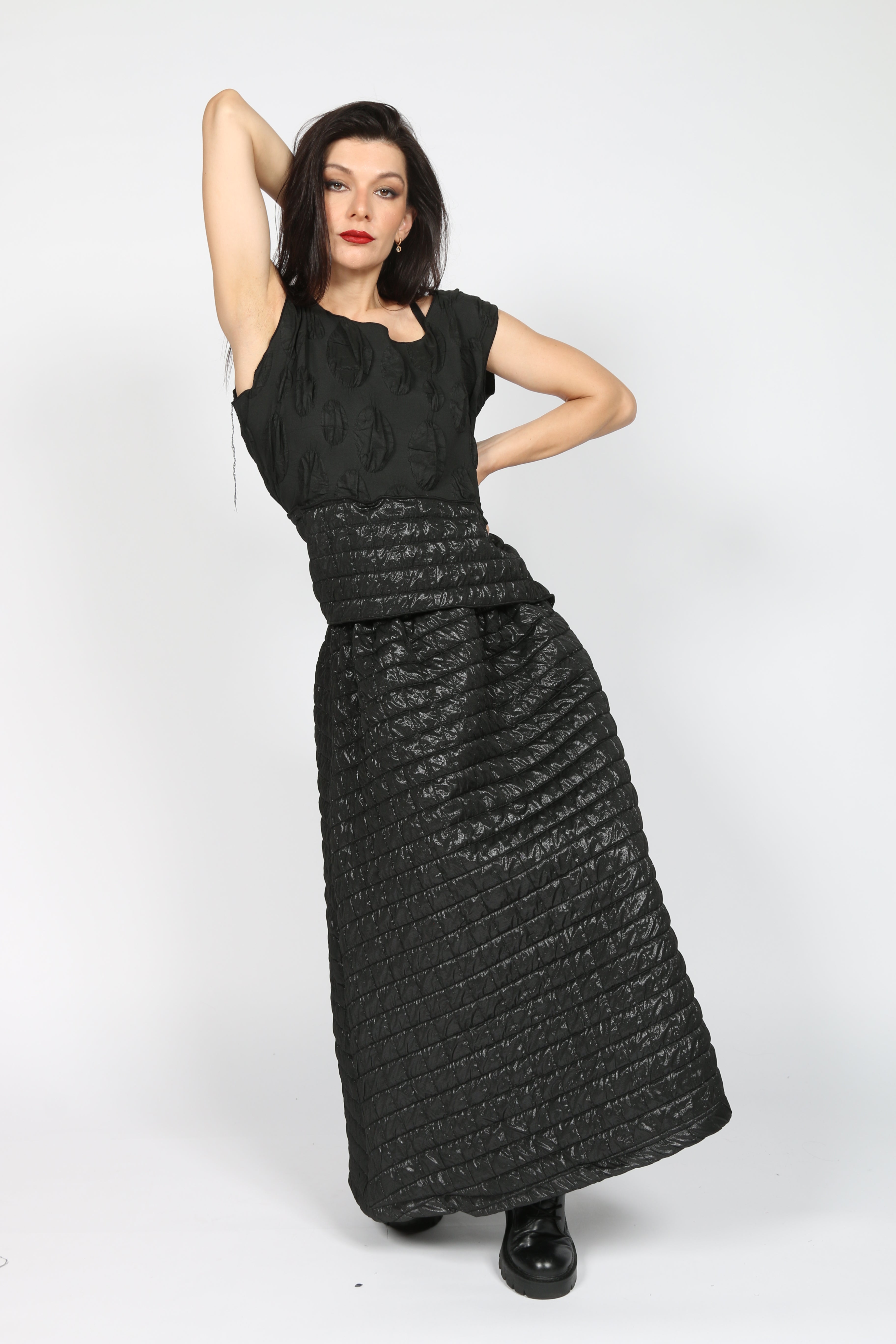 The ROBYN SKIRT is a high-style skirt featuring a great black SPECIAL CU;TED fabric. This cured silhouette is perfect for any special occasion. The fabric is soft, breathable, and easy to maintain, making it an ideal choice for your wardrobe.