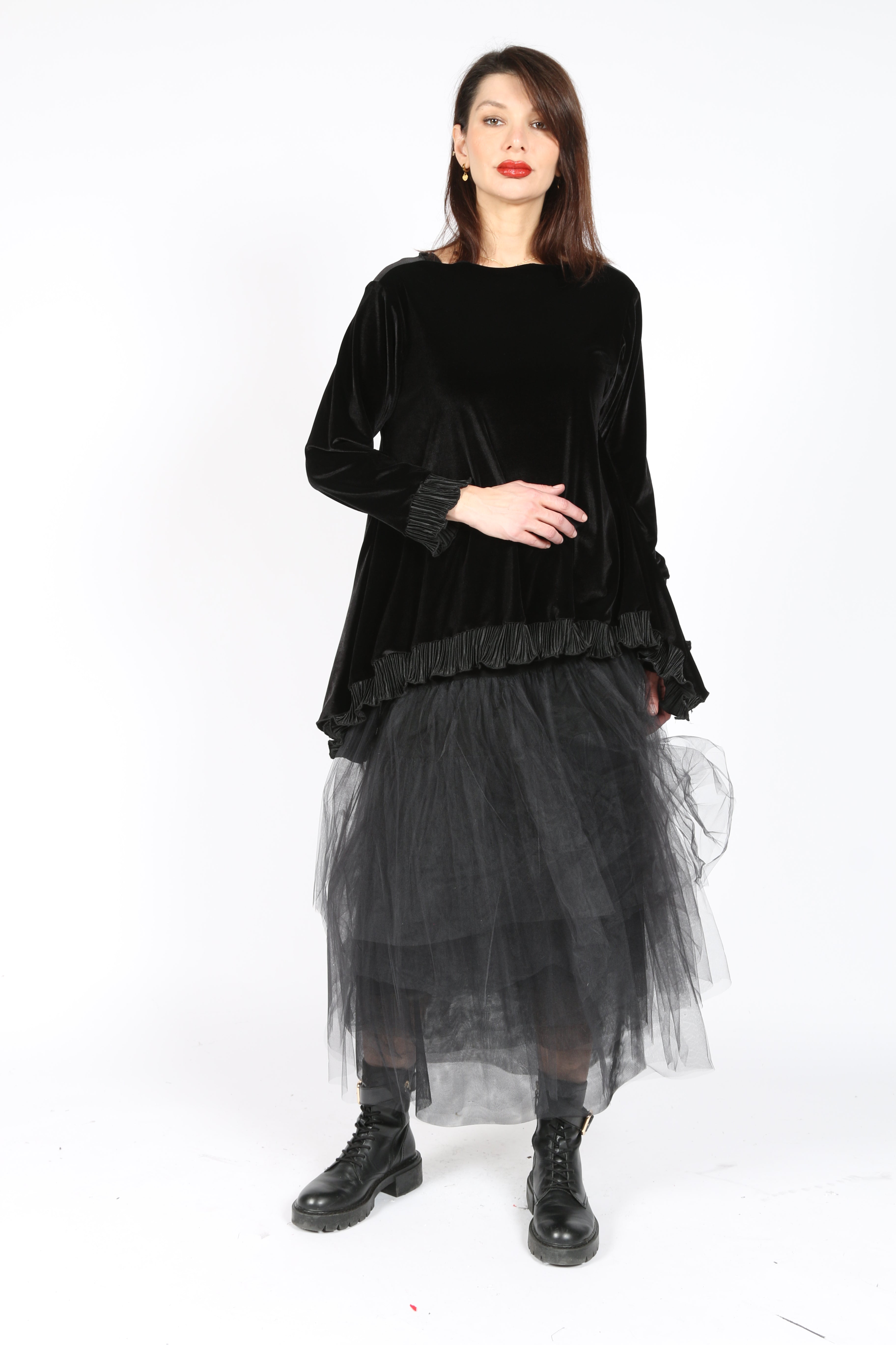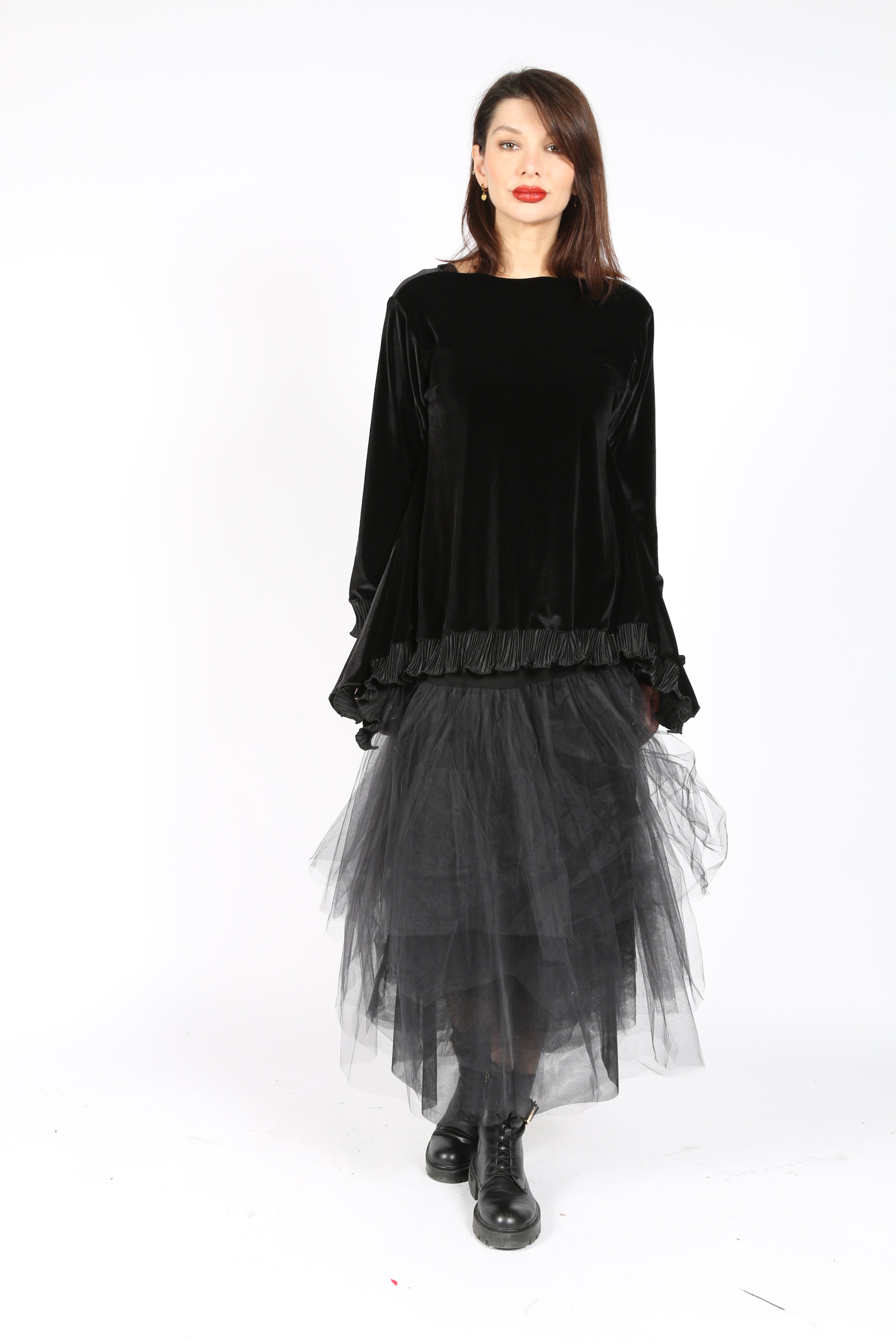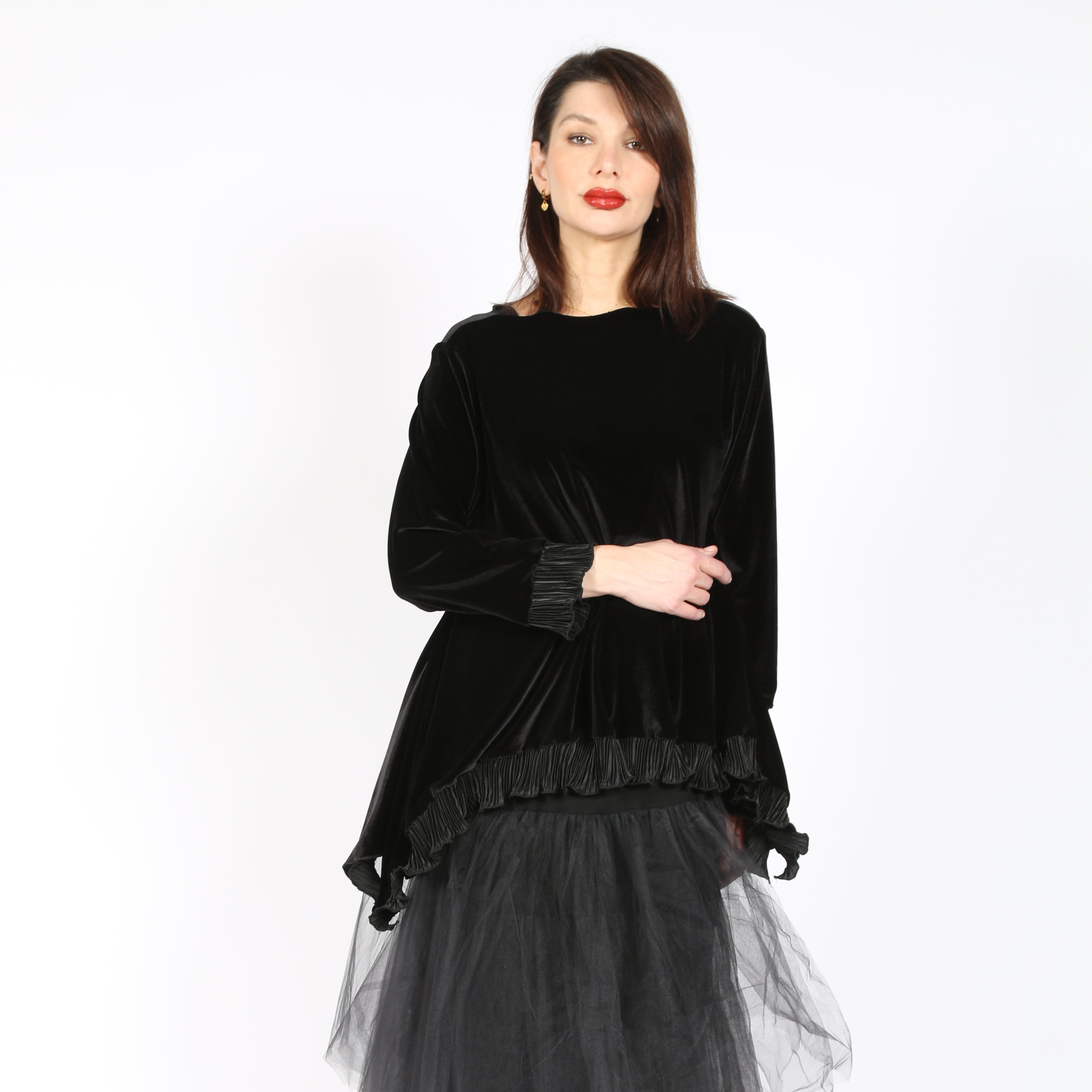 The Ruby Top showcases sumptuous velvet fabric that drapes with refined elegance. This sophisticated piece features a luxurious texture that catches light beautifully, creating subtle dimension and depth. Perfect for elevated occasions or adding a touch of understated glamour to your everyday wardrobe. The soft, plush velvet offers a premium feel against the skin while maintaining a polished silhouette. An investment piece that effortlessly transitions from day to evening wear.