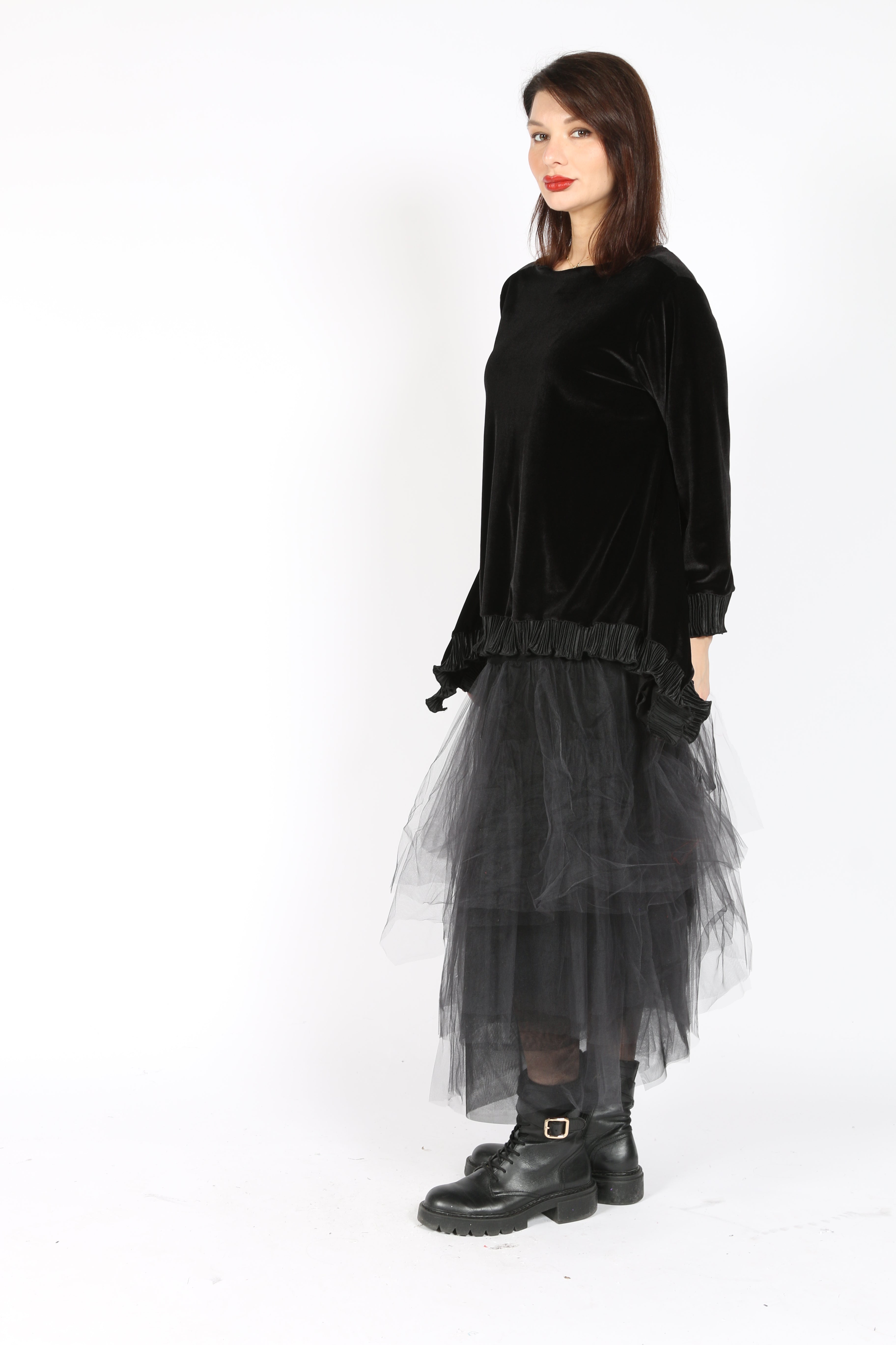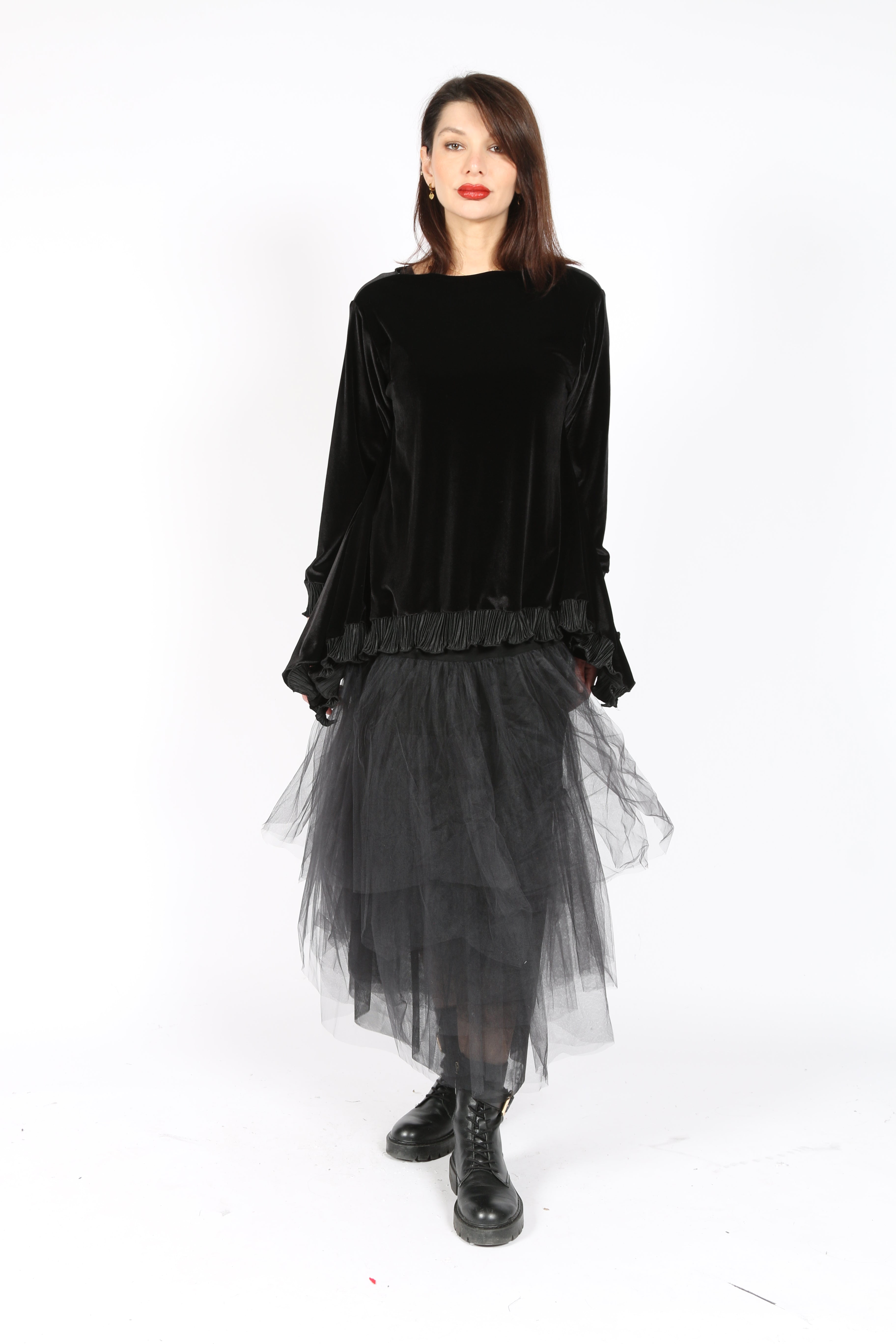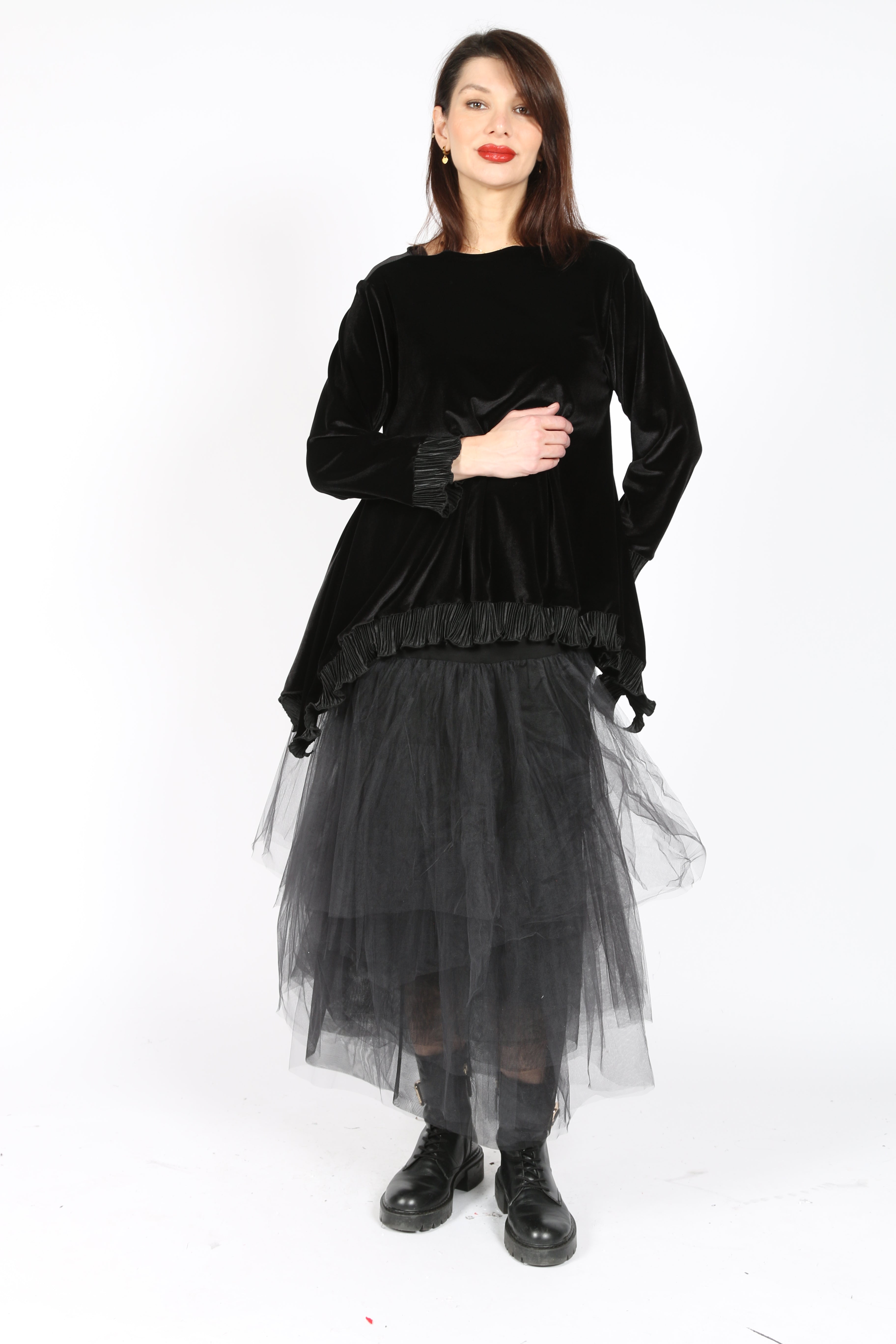 The Ruby Top showcases sumptuous velvet fabric that drapes with refined elegance. This sophisticated piece features a luxurious texture that catches light beautifully, creating subtle dimension and depth. Perfect for elevated occasions or adding a touch of understated glamour to your everyday wardrobe. The soft, plush velvet offers a premium feel against the skin while maintaining a polished silhouette. An investment piece that effortlessly transitions from day to evening wear.