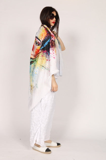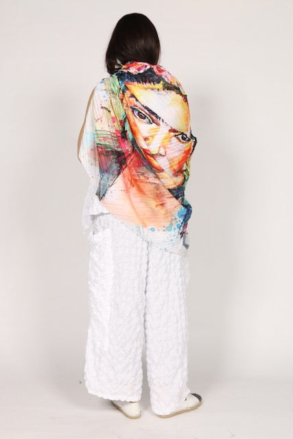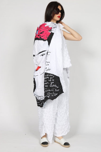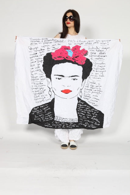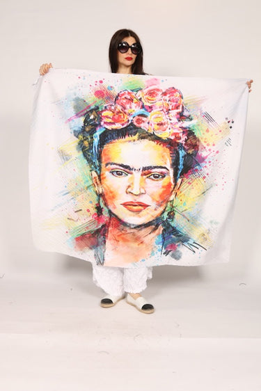 Elevate your wardrobe with our Frida scarf. This beautifully designed artsy scarf adds a touch of artistic flair to any outfit. Expertly crafted with top-quality materials, this scarf is not only stylish but also durable. Upgrade your style game and make a statement with our Frida scarf.