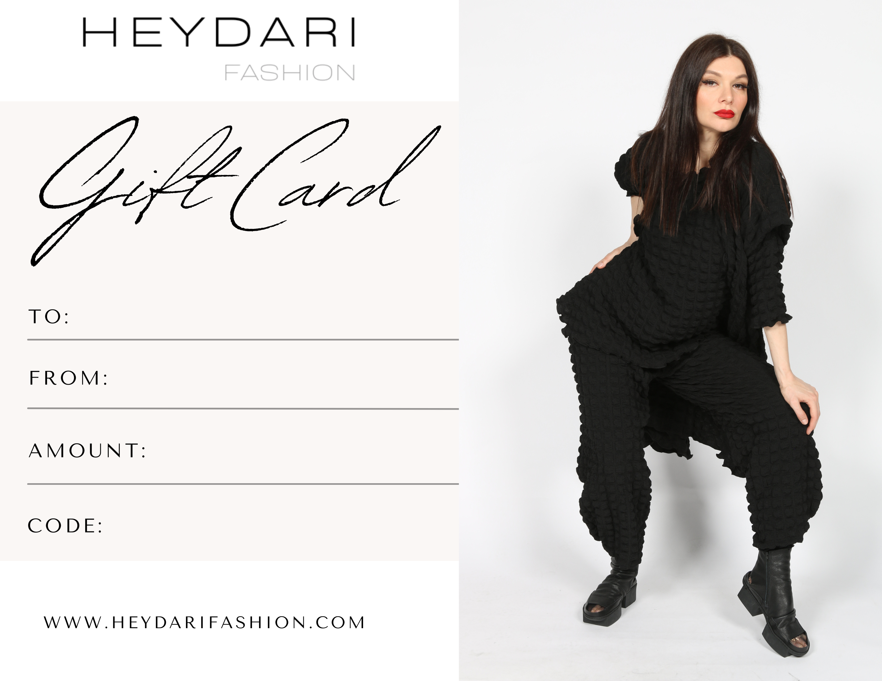 Whether you're celebrating a special occasion or expressing your appreciation, with HEYDARI Gift Cards, you're offering a curated journey of style and sophistication. Embrace the joy of gifting with HEYDARI Gift Cards – where fashion meets expression.
