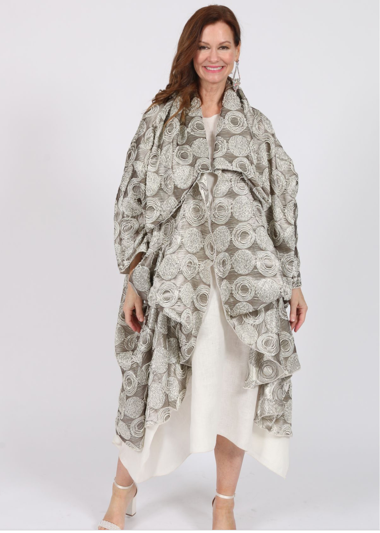 Elevate your wardrobe with this one-of-a-kind tapestry jacket in neutral tones. Its unique design blends classic sophistication with subtle texture, offering versatile layering for both casual and formal occasions. Crafted to provide comfort and style, this jacket adds a refined touch to any outfit while maintaining understated elegance.